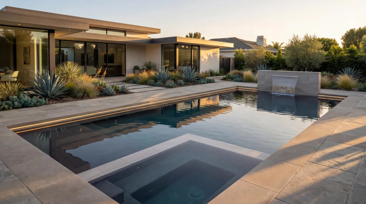 One of the strongest trends in pool renovation is the use of dark interior finishes. Shades like charcoal, deep blue, and graphite create a reflective, mirror-like surface that elevates the pool’s appearance. Paired with matte stone coping or large-format tiles, these finishes give the pool a modern, minimalist aesthetic that blends seamlessly with contemporary home designs.
